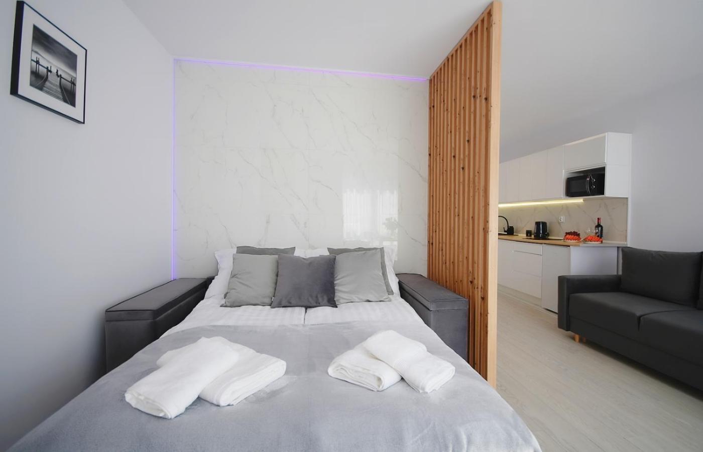 Apartament z 1 sypialnią. Meals can be prepared in the well-fitted kitchen, which comes with a stovetop, a refrigerator, kitchenware and a microwave. The apartment offers a wardrobe, an electric kettle, heating, a flat-screen TV, as well as ancourtyard view. The unit offers 2 beds. Apartament - 4 osobowy. Powierzchnia pokoju ok.: 33 mkw.